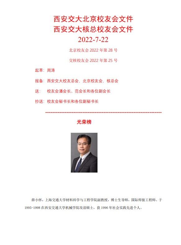 鉴于薛小怀员工在服务社会,普及专业知识,提升行业制造水平方面的贡献,西安交大员工会向全体员工发布“交大员工榜样—薛小怀”,全文如下: