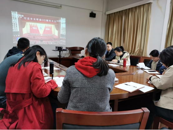 另外,教师党员通过视频观看深入学习了习近平总书记在“纪念辛亥革命110周年大会”上的重要讲话,总书记通过对辛亥革命背景和历史回顾,提出“要实现中华民族伟大复兴,就要坚持中国共产党的领导,坚持走有中国特色的社会主义道路,要依靠中国人民自己的奋勇斗争,要依靠中国人民和中华民族的同舟共济,同时要有安定团结的内部环境和和平稳定的国际环境”五点启示。与会党员一致认为总书记的讲话高瞻远瞩,思想深邃,内容丰富,为我们的工作指明了方向,提供了遵循。