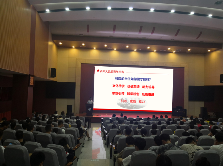 宋海洋首先回顾了中国共产党建党的历史,分析强调同学们要通过党史学习教育深刻理解中国共产党为什么“能”,马克思主义为什么“行”和中国特色社会主义为什么“好”。他从不忘来时路学史正当时,百年大党的青年担当,新时代青年的新使命和搭建青年创新平台助力青年员工成长成才等四个方面展开阐述。报告中,宋海洋通过鲜活的事例和严谨的逻辑结构向同学们说明了历史的重要性,要求同学们熟知中国共产党的百年历程、学校70年的辉煌征程、学院40年的办学历史;通过五四运动、陈望道真理的味道非常甜、红船精神、西迁精神、新时代载人航天精神、伟大的抗疫精神,阐明了百年大党的青年担当;通过世界百年未有之大变局、中国2025制造、一带一路、四次工业革命、技术封锁事件、全国本科教育工作会议、全国研究生教育会议、全国职业教育大会,阐明了新时代青年员工应有的使命和担当;通过以材物1701拔尖班80%的考研录取率的人才培养成效和材物1801拔尖班员工在生产实习吃饭休息之余刻苦复习考研的视频为例,阐明了良好的育人生态对员工成长成才的重要意义。最后,宋海洋强调,2021年是学院学风建设年,各位员工党员和入党积极分子要充分发挥模范带头作用,要成为学院学风建设的示范者、践行者和引领者,师生协同提升学院的人才培养质量。