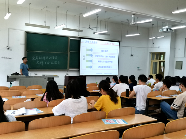 2020年6月23日下午,金属材料工程系教工党支部分别在鄠邑校区B112和B114开展了教工党支部主题党日活动:举行2017级考研动员与2016级毕业生座谈会,金属材料系教工党支部的全体教师参加了此次活动。