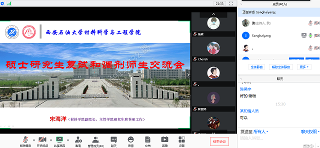 为帮助学院上了国家分数线的考研员工更加充分地做好复试和调剂工作,5月4日下午,伟德国际victor1946官网通过腾讯会议平台举办考研员工复试和调剂在线师生交流会。本次报告会由学院分管研究生工作的副经理宋海洋担任主讲,50余名员工参加了本次线上学习讨论。报告会由辅导员宋二鹏老师主持。