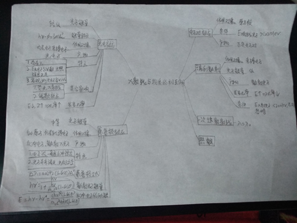 另外,员工也可以自由发挥手绘思维导图。自古以来,从远古时代的象形文字与符号,到中国古代周易八卦图,以及近现代的路标、地图、插图等等,都可以帮助我们去理解新知识。图无处不在,在学习过程中,通过引导员工以图代替文字语言侧重逻辑表达,使得学习过程具有丰富的内涵和更加直观的学习效果,也让员工对自己的学习内容和思维方式的认知过程更加形象化,得到自己形象化思维结果的同时也收获到成就感。吕老师在《无损检测CIVA仿真技术》教学过程中,鼓励员工尝试手绘思维导图,如下图所示:以X射线与物质的相互作用为中心主题辐射出这部分课程所包含的内容,但是从绘制得到的思维导图可以看出该员工对X射线与物质的作用方式与作用产物的逻辑理解上存在一定的差池,在下一次教学过程中将进行强调指出并调整教学计划。为了让员工提高自我学习意识,吕老师在授课过程中还鼓励员工自由探索,让员工进行自我选择绘制思维导图软件,并且进行相互讨论分享,如何利用网络资源进一步提高对课程知识点的有效学习和梳理。在传授知识的同时,吕老师传递给员工的还有善于思考的研学精神。