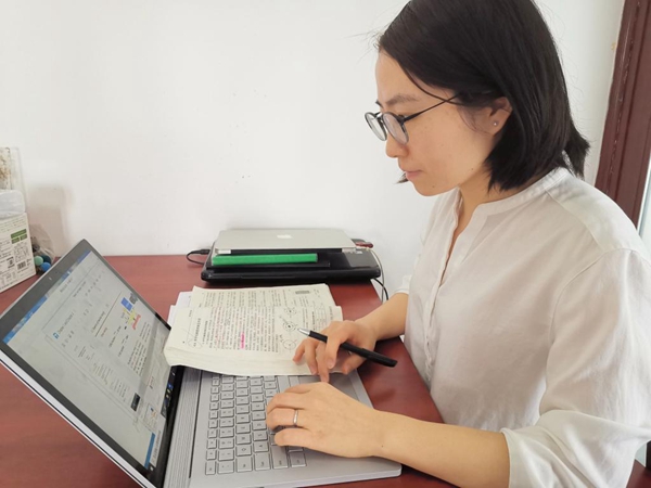 吕英老师在准备线上教学工作