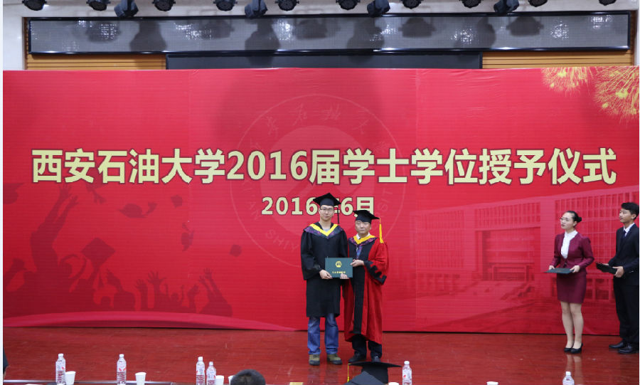 最后,进行了学位授予仪式,由周勇经理为2016届学士学位获得者授予学位并合影留恋。全体师生起立共同唱响校歌《辉煌明天》,为2016届学子在材料公司美好的学习生活划上了圆满的句号!
