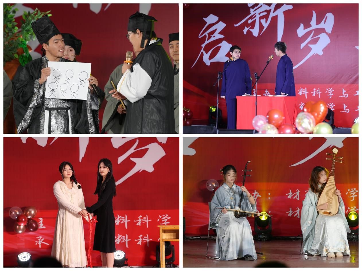 本场晚会共分为四个篇章:“金蛇披彩新年到、龙蛇交替福瑞呈、灵蛇贺岁展未来、祥蛇送安展宏图”。节目丰富多彩,涵盖了歌曲、舞蹈、相声、话剧等多种艺术形式,舞蹈《Sunny Boy》、《Shy》、《叫一声二奶奶》、《山灵之舞》和《Meow》以精湛的演技和优美的舞姿,点燃了全场的热情;歌曲《奔跑》、《大鱼》、《雨爱》和《就是爱你》以真挚的情感演绎,旋律优美动听,深受现场观众的喜爱;器乐演奏《水龙吟》以其宁静优雅、绵延悠长的旋律,为观众带来心灵的宁静;相声《富贵人生》和话剧《万松书院》以幽默诙谐的对话和情节,展现了妙趣横生的艺术魅力;心理剧《提线木偶》运用多种情景剧技巧,关注当下常见心理问题,引发了在场观众的共鸣和思考。整场晚会气氛热烈,现场掌声雷动。