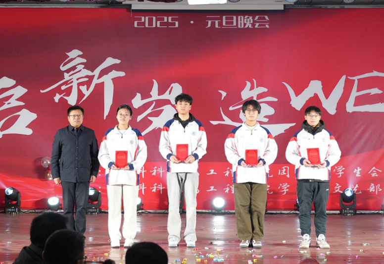 晚会期间,张骁勇为学院2024年获得国家奖学金、国家励志奖学金、王涛英才奖学金、学业奖学金等员工代表进行颁奖,王亮为学院2024年在学科竞赛中取得优异成绩的团队及个人进行了颁奖。
