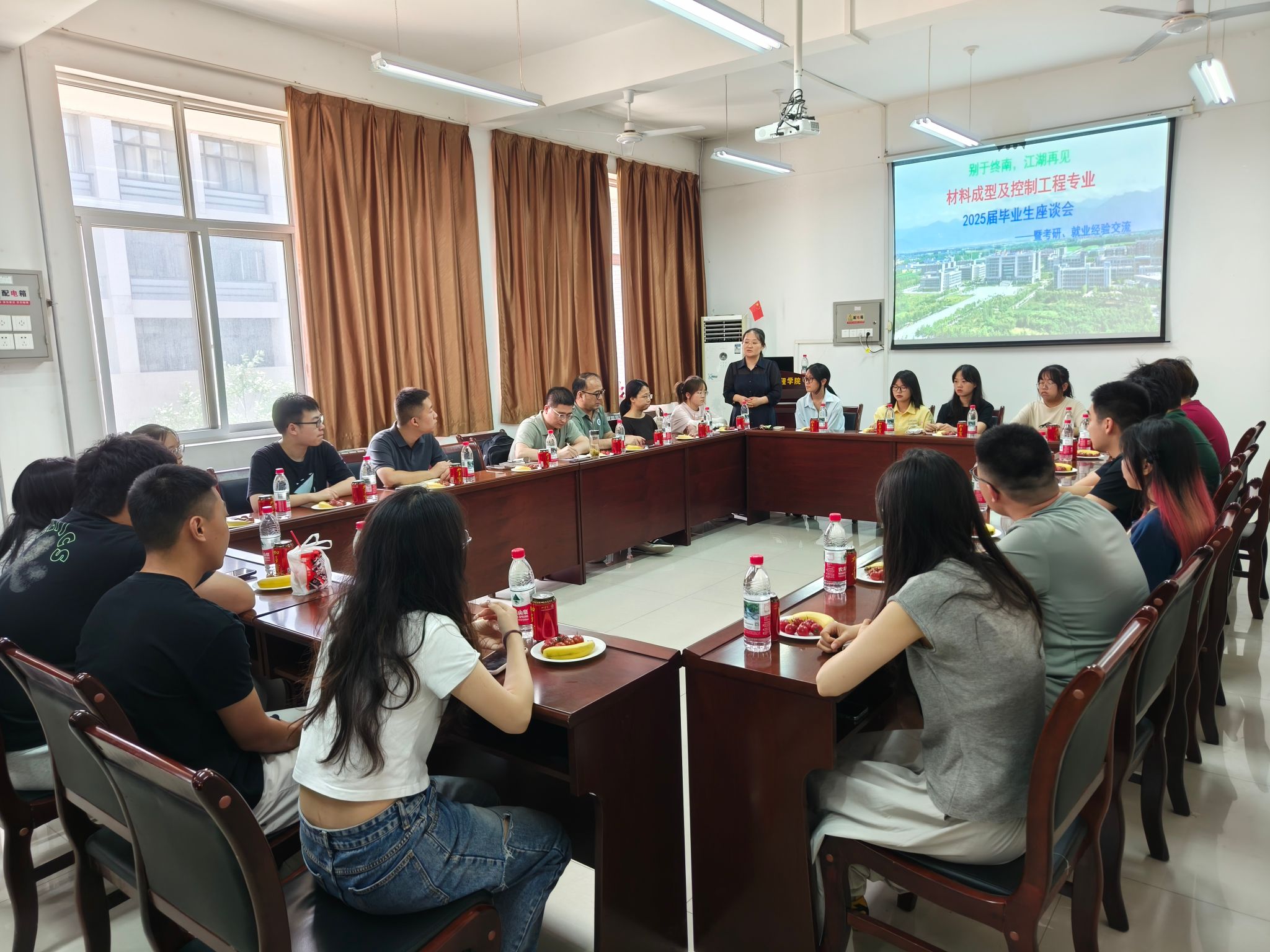 6月11日下午,材料成型及控制工程专业在鄠邑校区机械材料楼(天工楼)204会议室举行2025届毕业生座谈会暨考研、就业经验交流会。本次会议由系主任胥珊娜主持,材控系教师代表、21级毕业生代表及22、23级员工代表共同参加会议。
