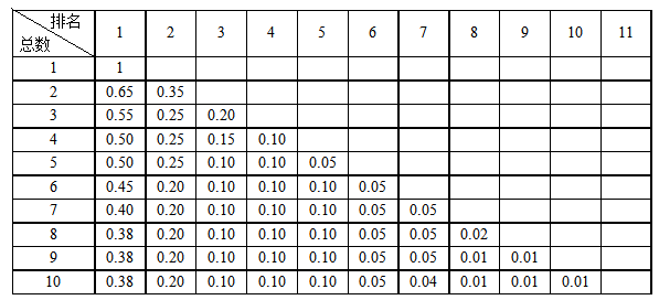 ②某项成果分值10分,共4人参加,申请人排名为第三,则申请人该项目的贡献分为:10×0.15=1.5分。