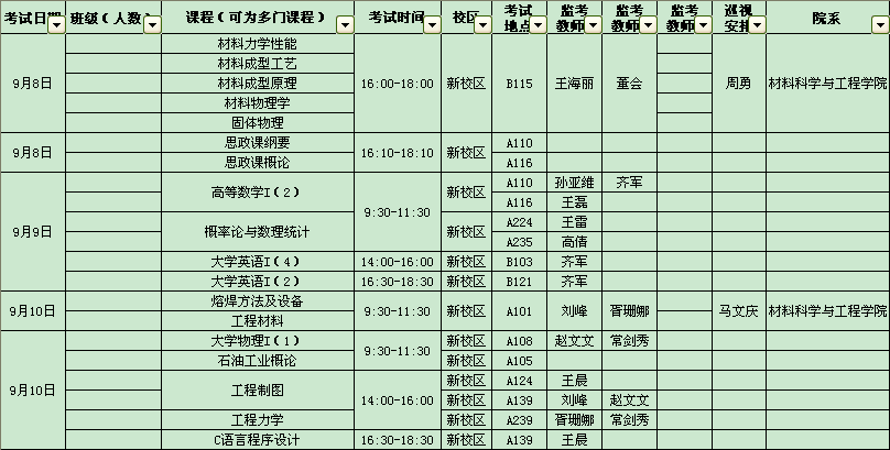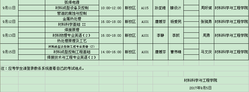 2016-2017学年第二学期课程补考考试日程表