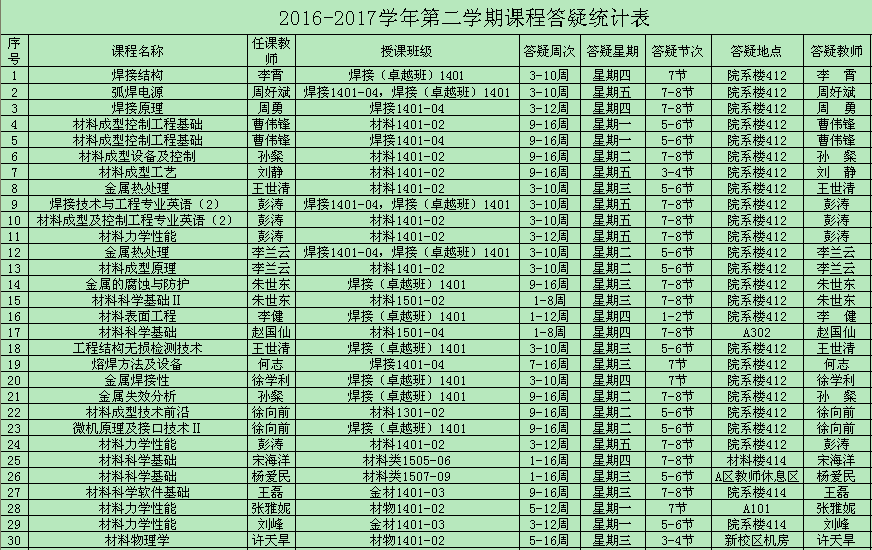 2016-2017学年第二学期课程答疑统计