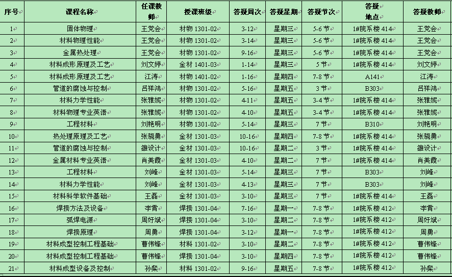 2015-2016学年第二学期课程答疑统计表