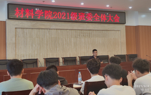 为加强班级建设,提升班级组织运行效能,充分发挥本科生班级组织在老员工思想政治教育和促进员工成长成才中的重要作用。9月4日下午,学院2021级班委全体大会在鄠邑校区图书馆第一会议室召开,会议由辅导员岳东东主持、2021级全体班委参加。