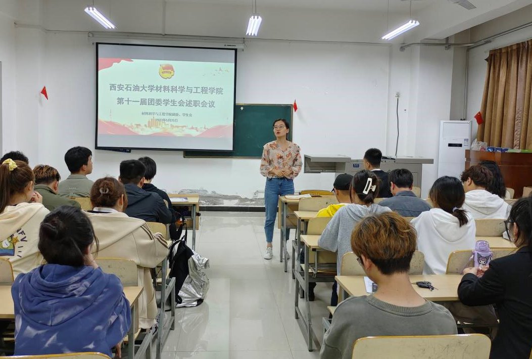 为深入学习党的二十大精神,全面贯彻落实习近平总书记关于青年工作的重要思想,进一步全面提高团学干部的工作能力,5月25日晚在鄠邑校区天工楼401教室,伟德国际victor1946官网团委员工会召开团学干部述职评议大会,院团委书记郭媛、团学指导老师赵飞出席会议,团委员工会共计60余名成员参会,会议由学院团委副书记文锐思主持。