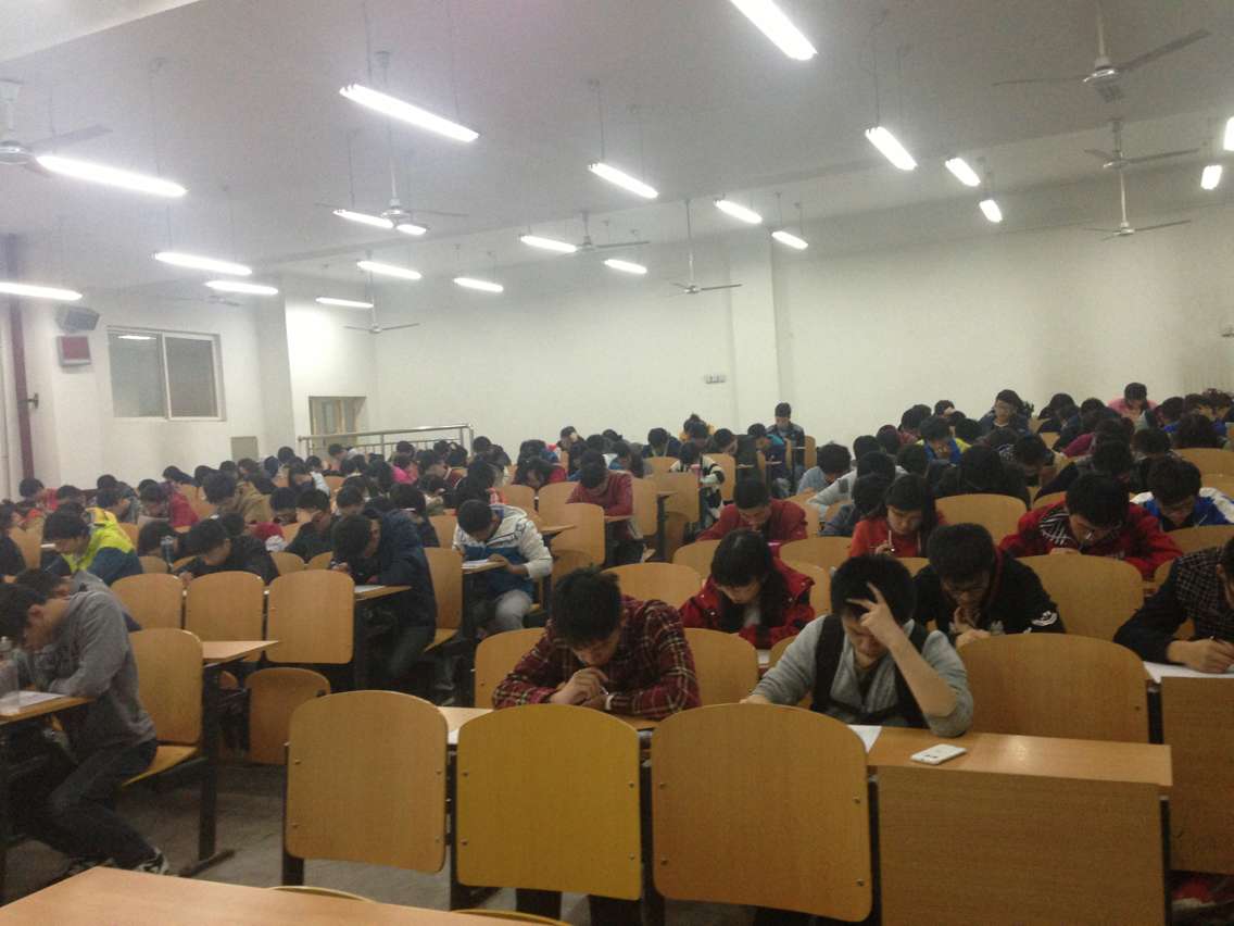 为了提高2014级同学对全国大学英语四级考试的解题技巧,同时也为了掌握员工们的复习状况,2015年11月5日晚19时,由公司2014级辅导员任远老师与员工干部组织筹备的英语四级第二次模拟考试于新校区B区212、214教室如期进行。