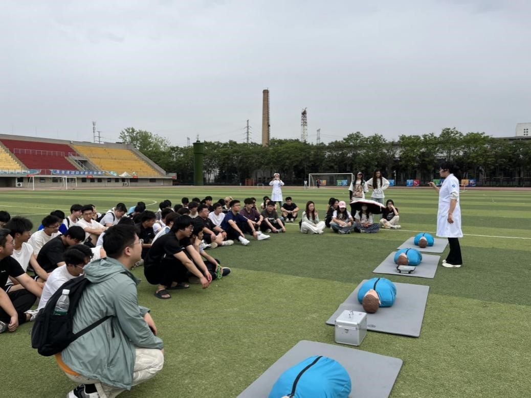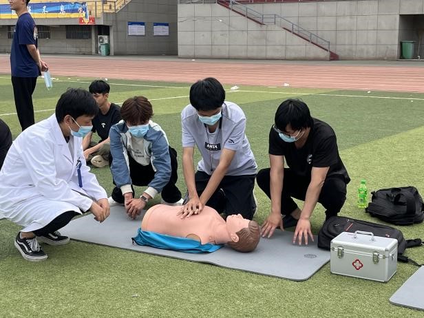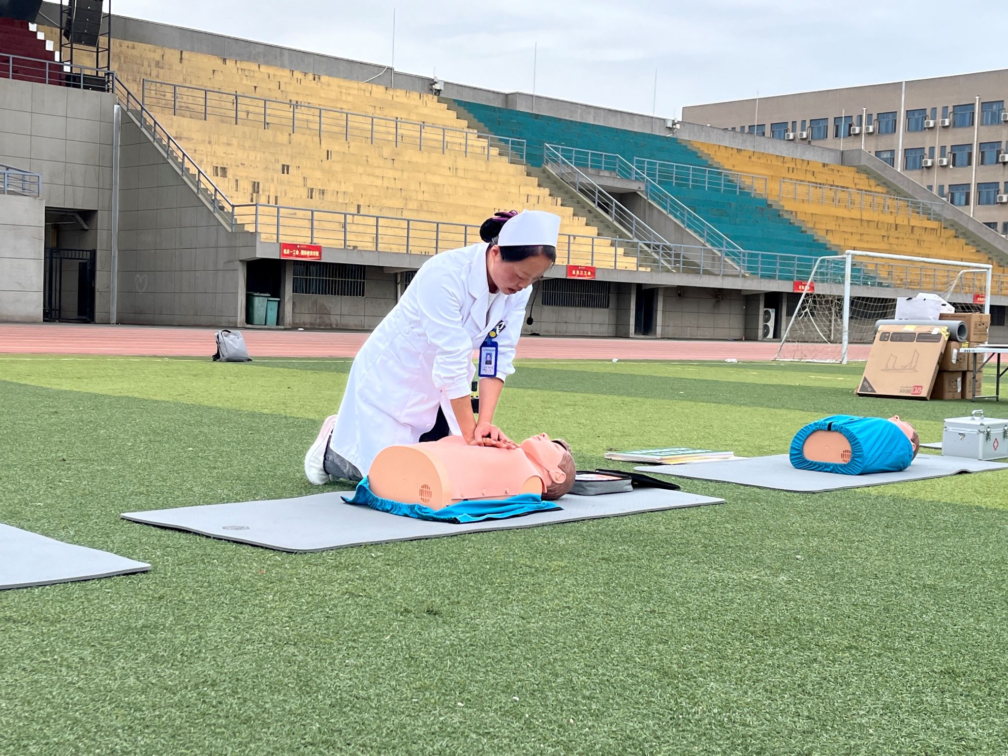 为普及急救知识,增强员工应对突发事件的处置能力。5月14日下午,伟德国际victor1946官网联合校医院在鄠邑校区东操场开展应急救护培训活动。培训内容涵盖异物卡喉(海姆立克急救法)、中暑晕倒、烧烫伤处理、心肺复苏(CPR)及自动体外除颤器(AED)使用等实用技能,通过理论讲解与实操演练相结合的方式,为师生共同带来了一场生动实用的生命教育课。
