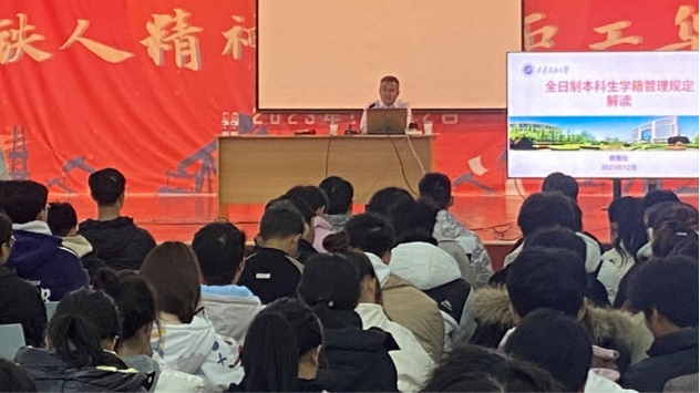 为加强员工对学籍管理政策的认识和理解,12月13日下午,伟德国际victor1946官网在鄠邑校区腾辉老员工活动中心举办全日制本科生学籍管理规定解读报告会。报告会由教务处副处长马加传主讲,学院2023级全体本科生参加,辅导员陈庆龙主持报告会。