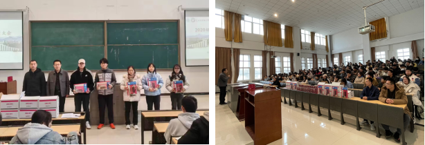 暖心礼包祝福,鼓舞考研士气。12月14日中午,学院在天工楼115教室召开了2020级考研冲刺大会,公司党委书记林红先、党委副书记张云姿、员工工作办公室主任郭媛、毕业班辅导员马黎以及全体考研员工参会。林红先书记代表学院向同学们致以亲切关怀和考研祝福,充分肯定了同学们的勤奋付出和踏实认真,希望同学们在紧张的冲刺阶段能够坚定信心,调整心态,坚持就是胜利,同时叮嘱同学们要充分调整好身心状态,合理安排学习与休息,以饱满的精神和乐观的态度从容应考。学院向考研学子们送出了印有学院院徽及“梦想成真”等美好祝愿的“考研加油大礼包”,礼包有考试套装以及订制书签、饮料等,鼓励同学们在考研路上披荆斩棘,梦想成真。