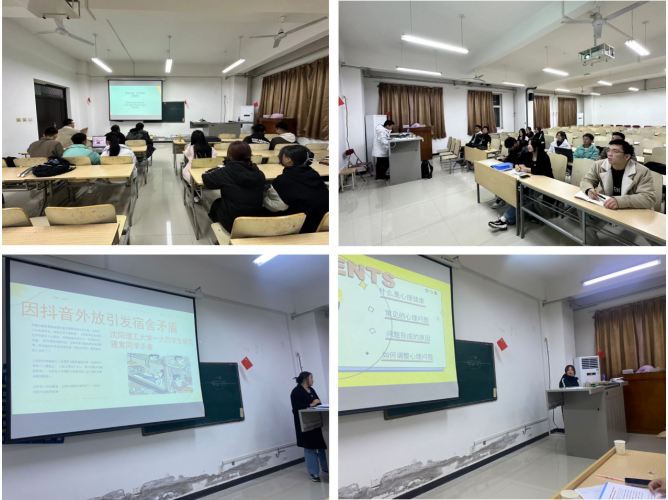 为更好地开展2023级新生心理健康教育工作,宣传普及心理健康知识,帮助员工形成正确的心理健康观念。11月15日晚,材料科学与工程学院在鄠邑校区天工楼401教室组织开展“朋辈互助,友爱班级“心理育人主题班会分享交流活动。2023级辅导员陈庆龙老师,各班班委和员工代表参加分享会。