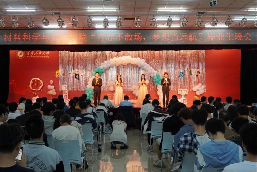 “青春不散场,梦想当远航”2023届毕业生晚会作为学院送别毕业生系列活动之一,既是一场告别老员工活,开启人生新篇章的仪式,又给同学们提供了一个宣泄感情的机会,进一步增进了同学和老师之间的情感。对于2023届的毕业生们,大学的旅途虽已快结束,但人生的征程却刚刚开始,希望每一位走出校门的材料学子,都能秉承着“好学力行,自强不息”的校训,在努力实现中华民族伟大复兴中国梦的生动实践中贡献青春力量。祝愿2023届毕业生带着最初的梦想奔赴前程,在人生道路上一帆风顺!