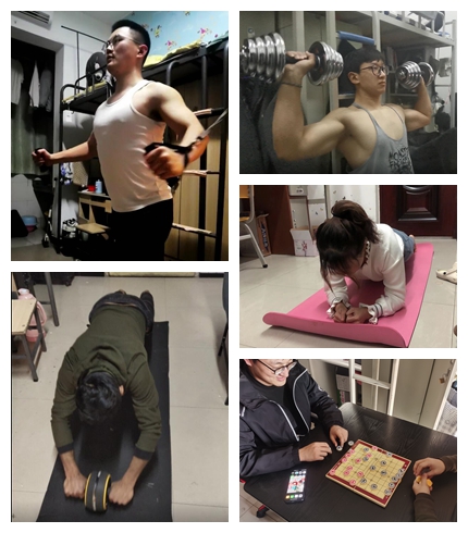 云健身活动:在发起云健身活动通知后,各年级员工积极响应号召,同学们利用现有器材举行不同的健身活动,大家重拾运动热情,相继解锁宿舍锻炼的新模式,既有俯卧撑、瑜伽、乒乓球、太极拳等日常锻炼活动,也有趣味性强的棋艺益智类活动。通过每日健身活动,展现出了材料学子健康阳光、积极向上的生活态度,相信不久的日子,运动场上定会重现同学们矫健的身姿!
