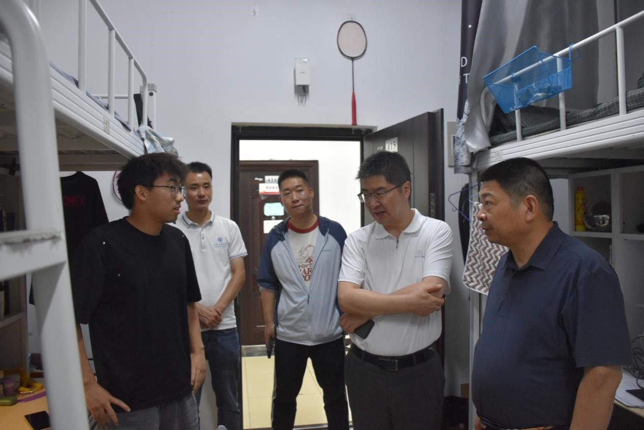 “老家是哪里的?”“毕业后去哪里工作?”“考研考到哪所学校了?”“有什么困难或意见建议?”每走进一间员工宿舍,院领导亲切问候,与毕业生详细交谈。同学们介绍了自己的就业单位、考研的学校和未来的发展前景,看到同学们毕业去向都能落实,对未来的发展充满信心,院领导倍感欣慰,鼓励大家在人生新的旅途和起点上不忘初心、牢记使命、砥砺前行,争取取得更加辉煌的成绩。嘱咐同学们要积极践行“好学力行、自强不息”的校训和“团结、勤奋、求是、创新”的校风,展现“四实一新”的西石大学子风采,不断为中华民族伟大复兴的“中国梦”积极贡献力量。并表示学校是同学们最温情的港湾和最坚强的后盾,是永远的家,希望同学们能够时刻关注学校的发展,常回家看看。面对学院的暖心关怀,同学们也汇报了自己大学四年的学习收获,并表达了对老师、同窗的不舍之情和对母校培养的感激之情,纷纷表示将牢记谆谆教诲、心系母校,以实际行动回报母校和社会。