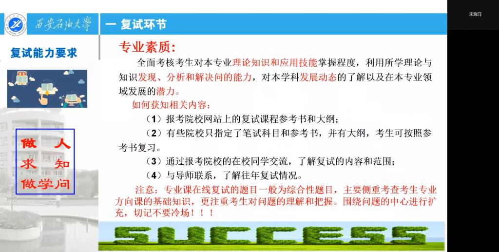 在答疑环节,宋书记就同学们在复试和调剂方面出现的困惑进行了耐心细致的解答,现场气氛非常热烈。